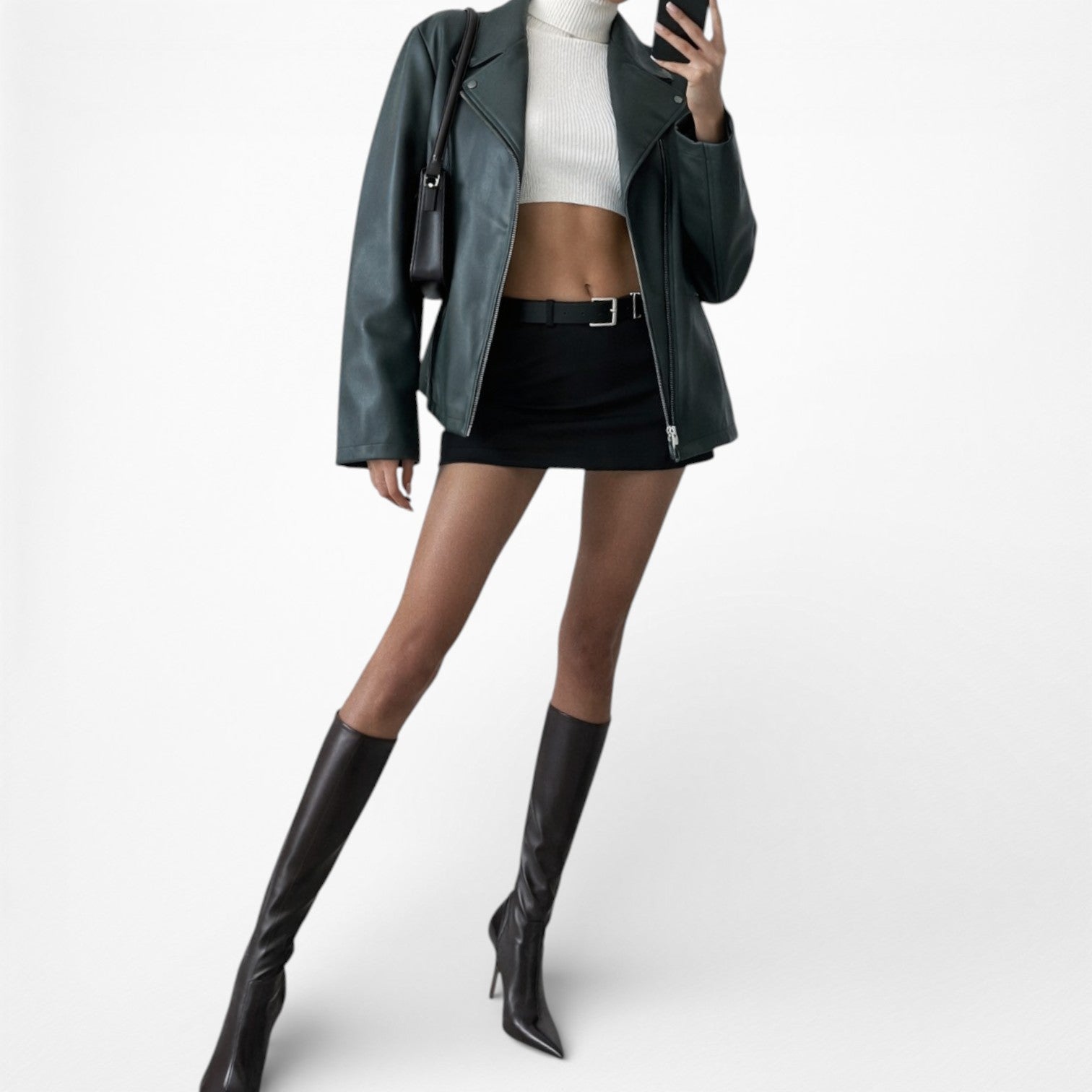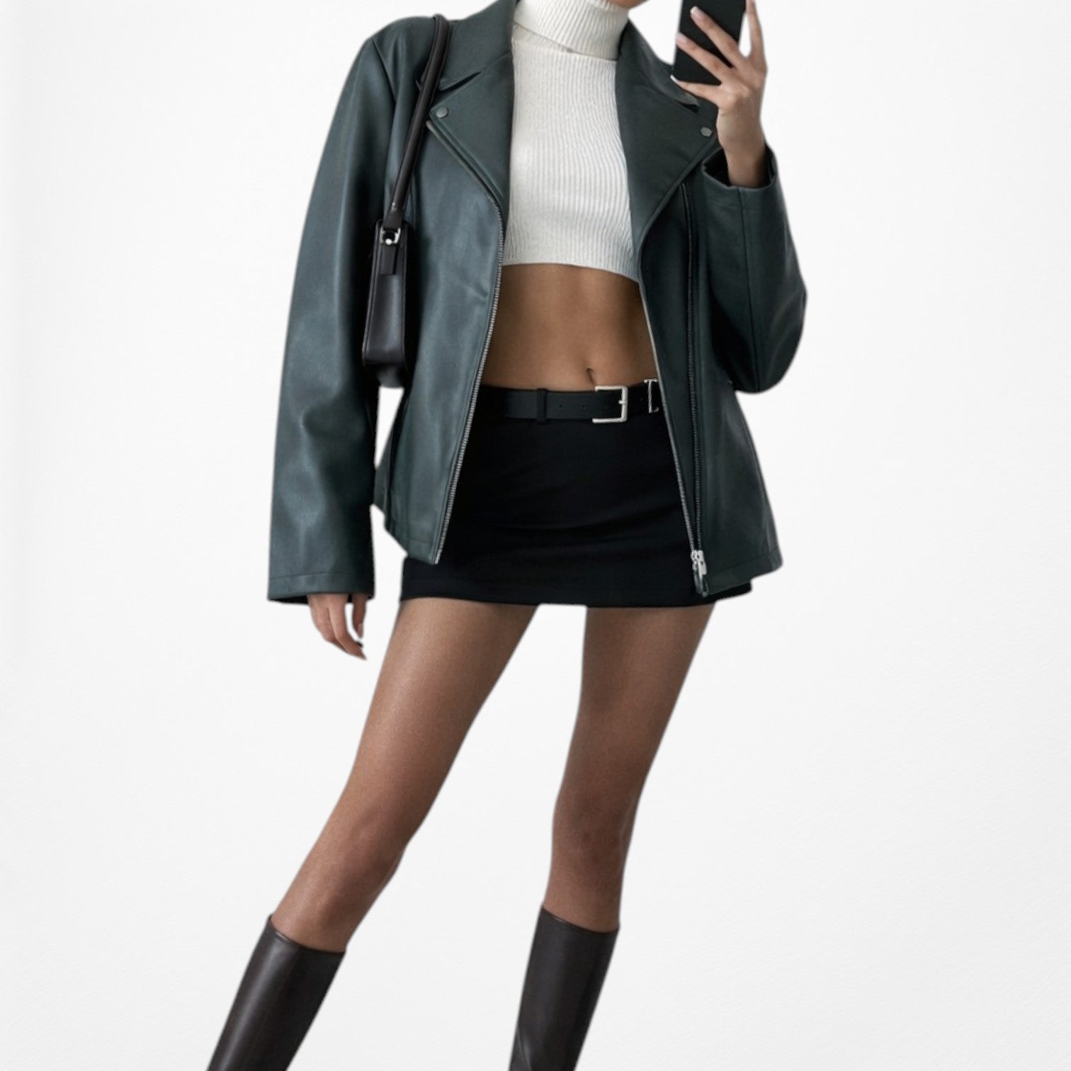Vintage Y2K Dark Green Motorcycle Faux Leather Jacket Size 6/M