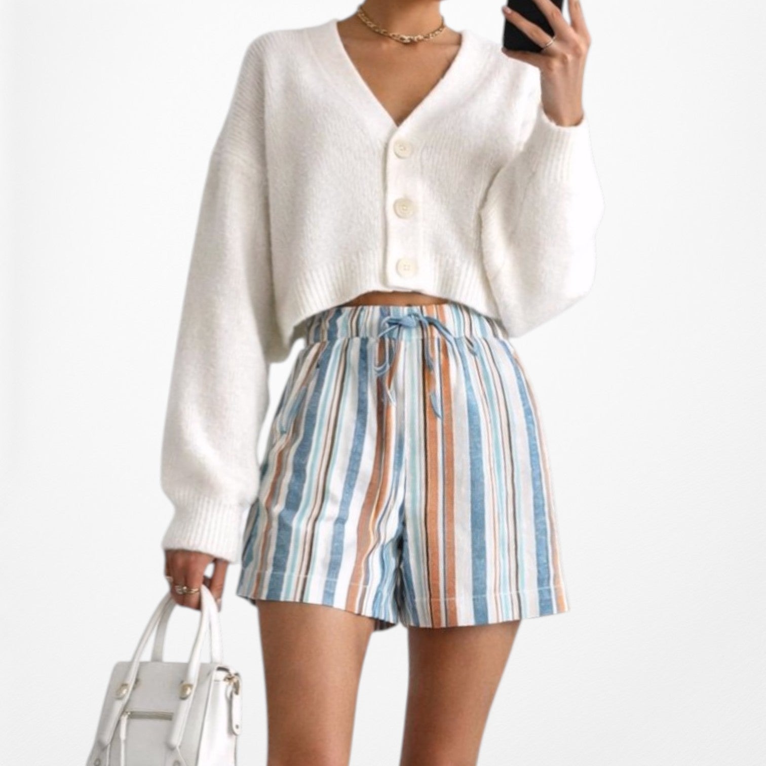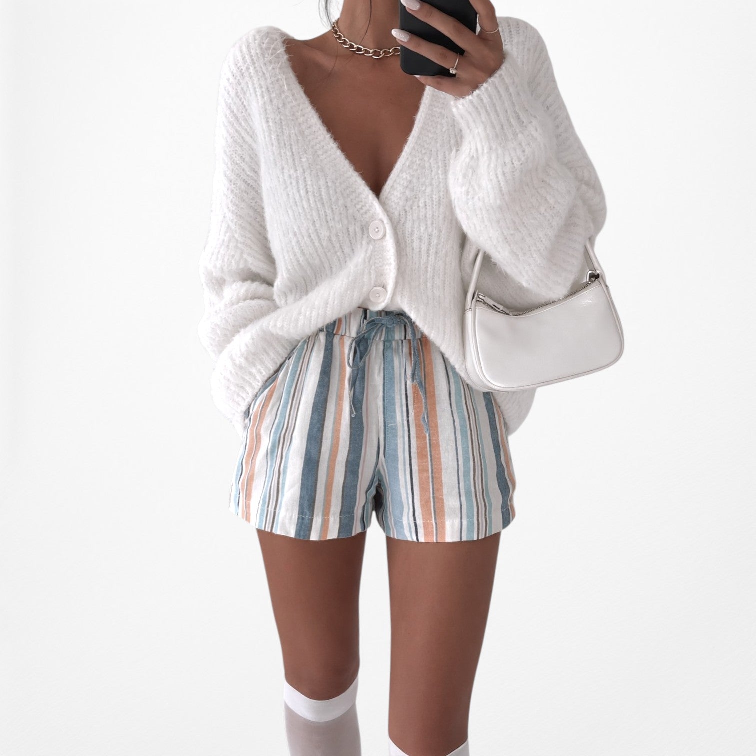 Blue High Low Rise Drawstring Relaxed Fit Summer Bermuda Style Shorts Size XS/S
