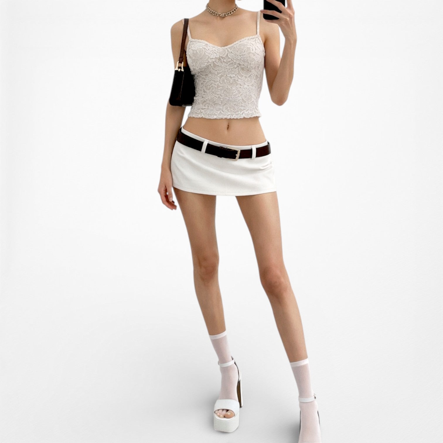 Vintage Y2K Beige Nude Floral Lace Cami Knit Tank Top Size S