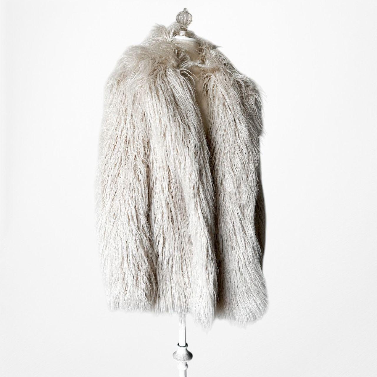 H&M Off White Beige Faux Fur Oversized Teddy Style Coat Jacket Size M