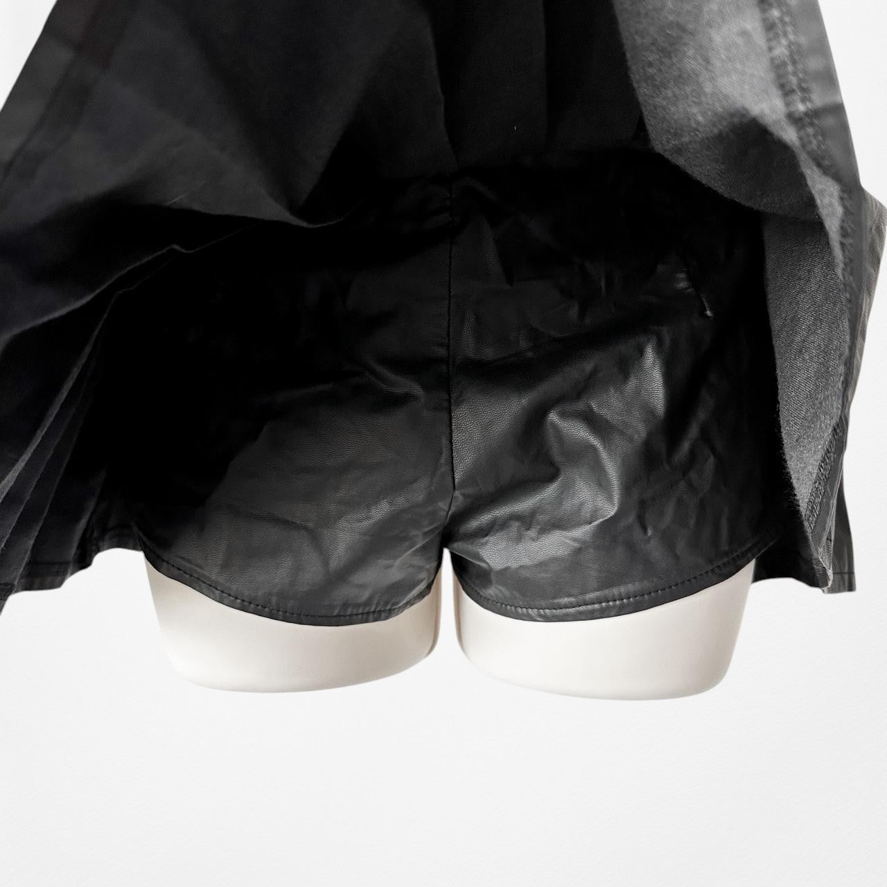 Lioness Black Faux Leather Micro Mini Pleated Skater Skirt Skort Size XS