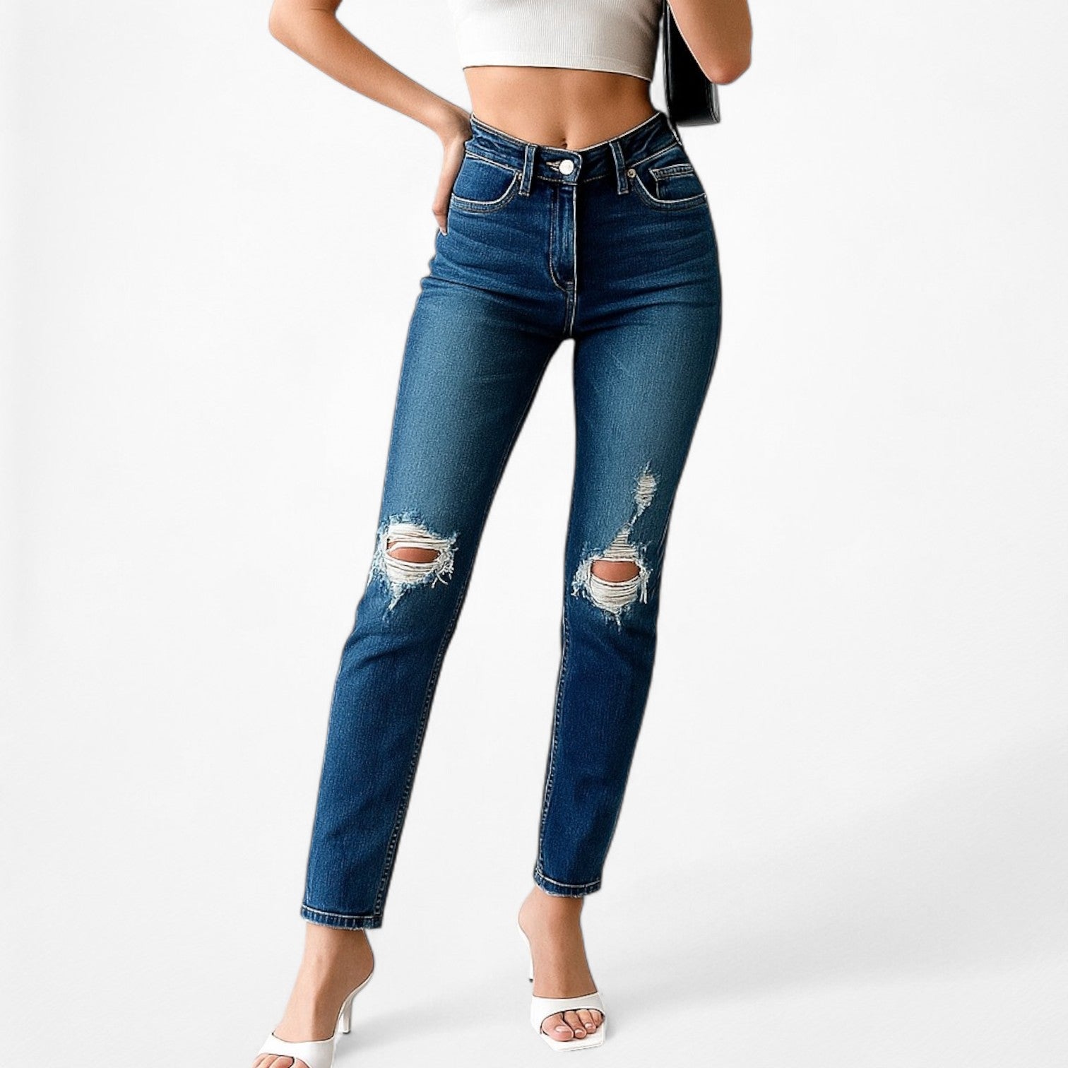 Lovers & Friends Dark Wash Denim Ripped Knee Mid Rise Skinny Jeans Size XS