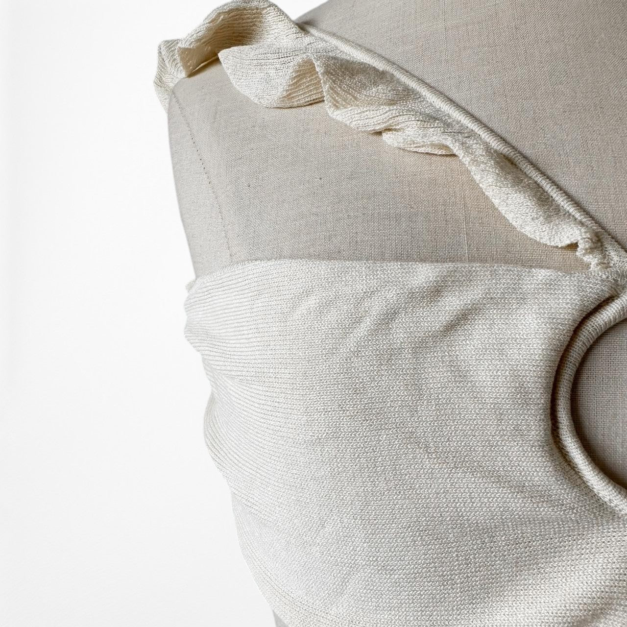 Off White Cream Cutout Ruffle Knit Maxi Bodycon Dress Size M