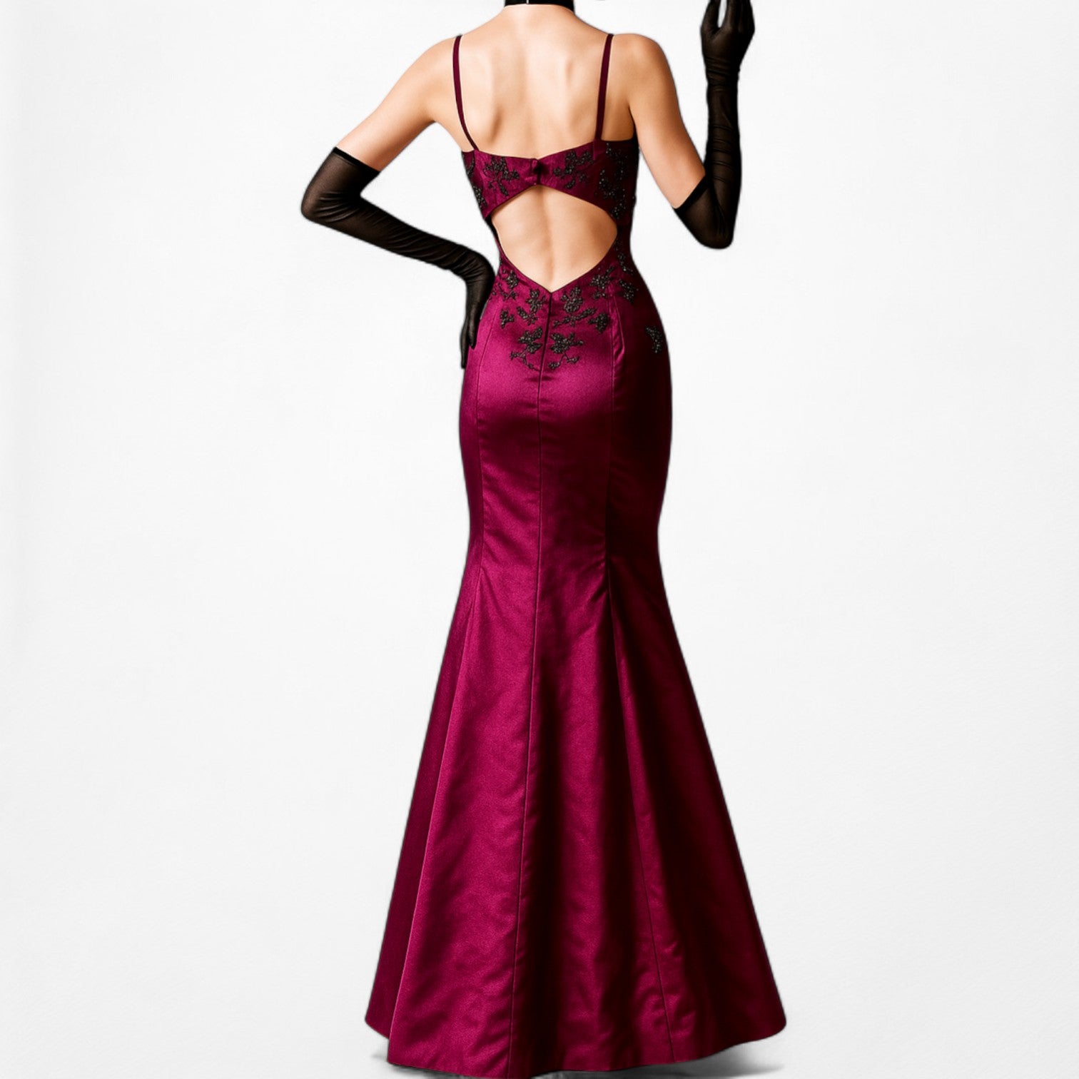 Y2K 2000s coquette fairy burgundy red satin fit flared maxi dress. Beaded on the bodice. Back zip closure. Padded