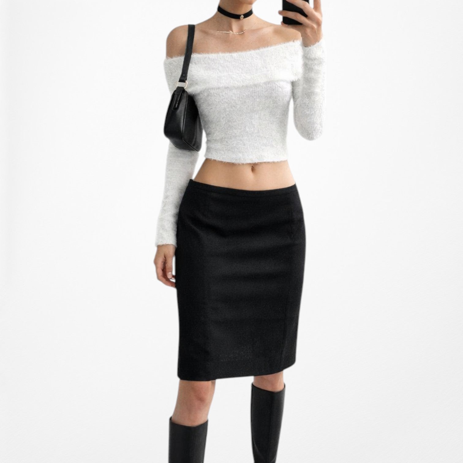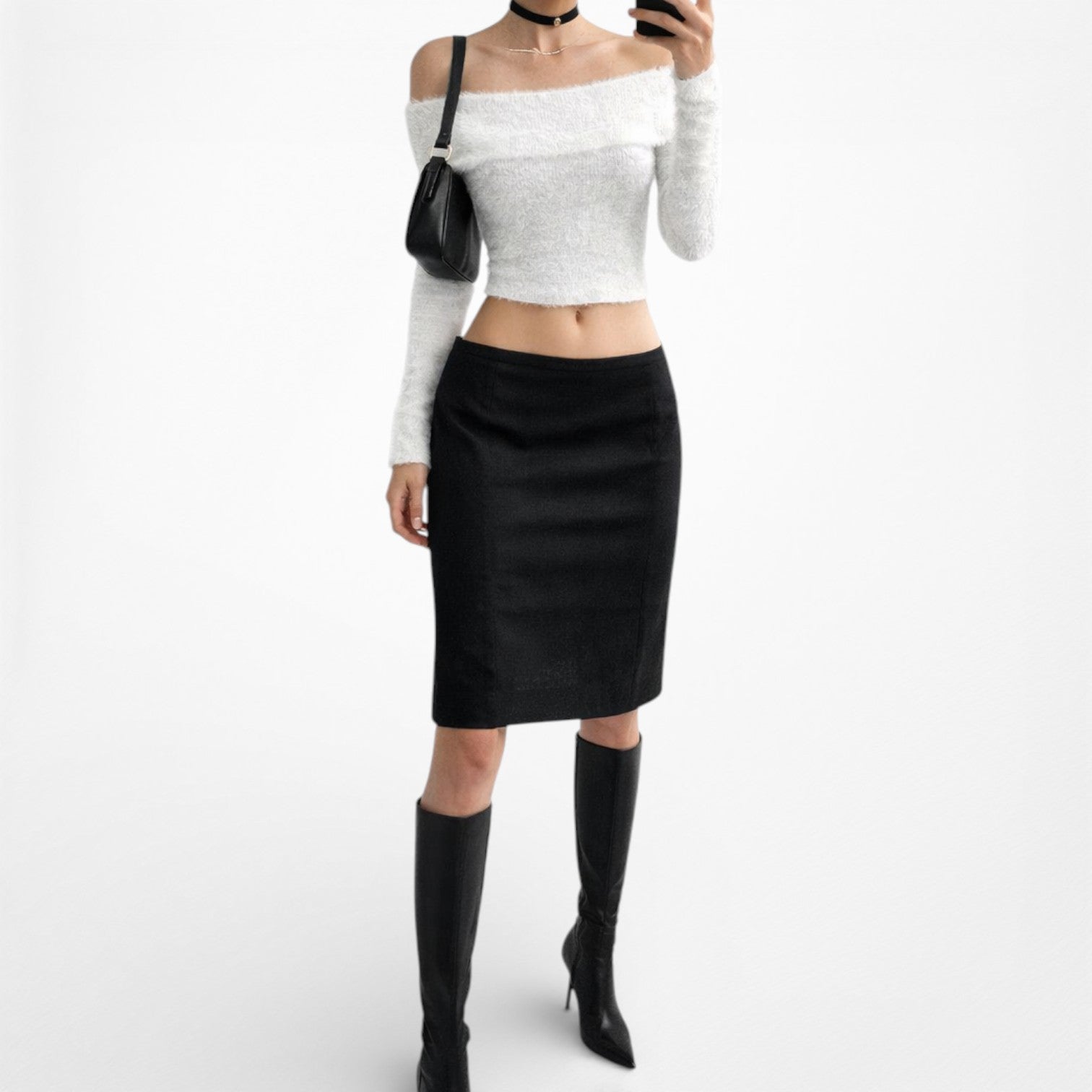 Vintage Y2K Black Knee Length Bodycon Pencil Skirt Size M
