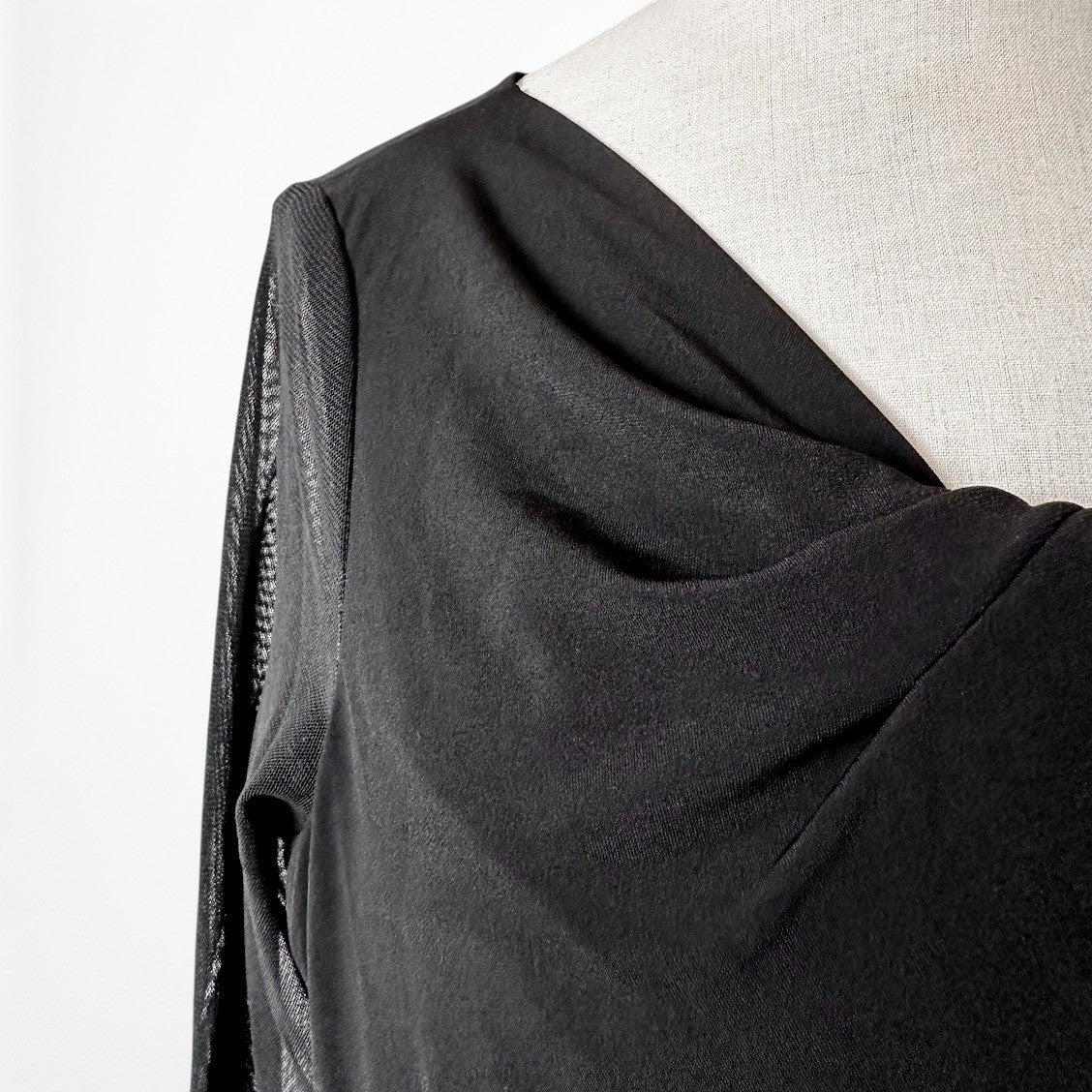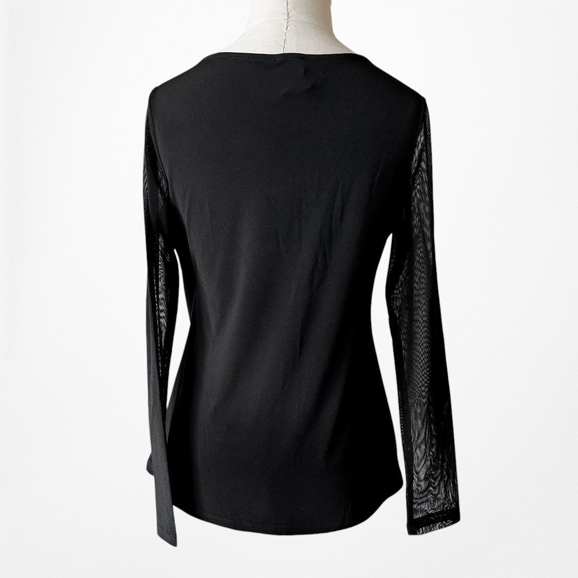 Vintage Y2K Black Knit Pullover Long Sheer Sleeve Twisted Front Fitted Top M