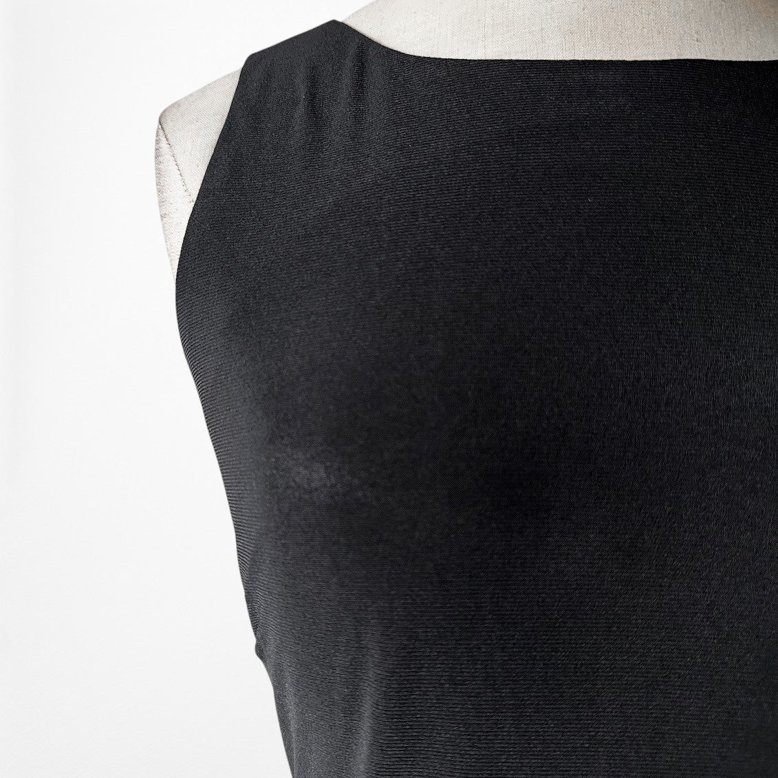 Sleeveless. Knit. Knee length. Bodycon. Back zip closure