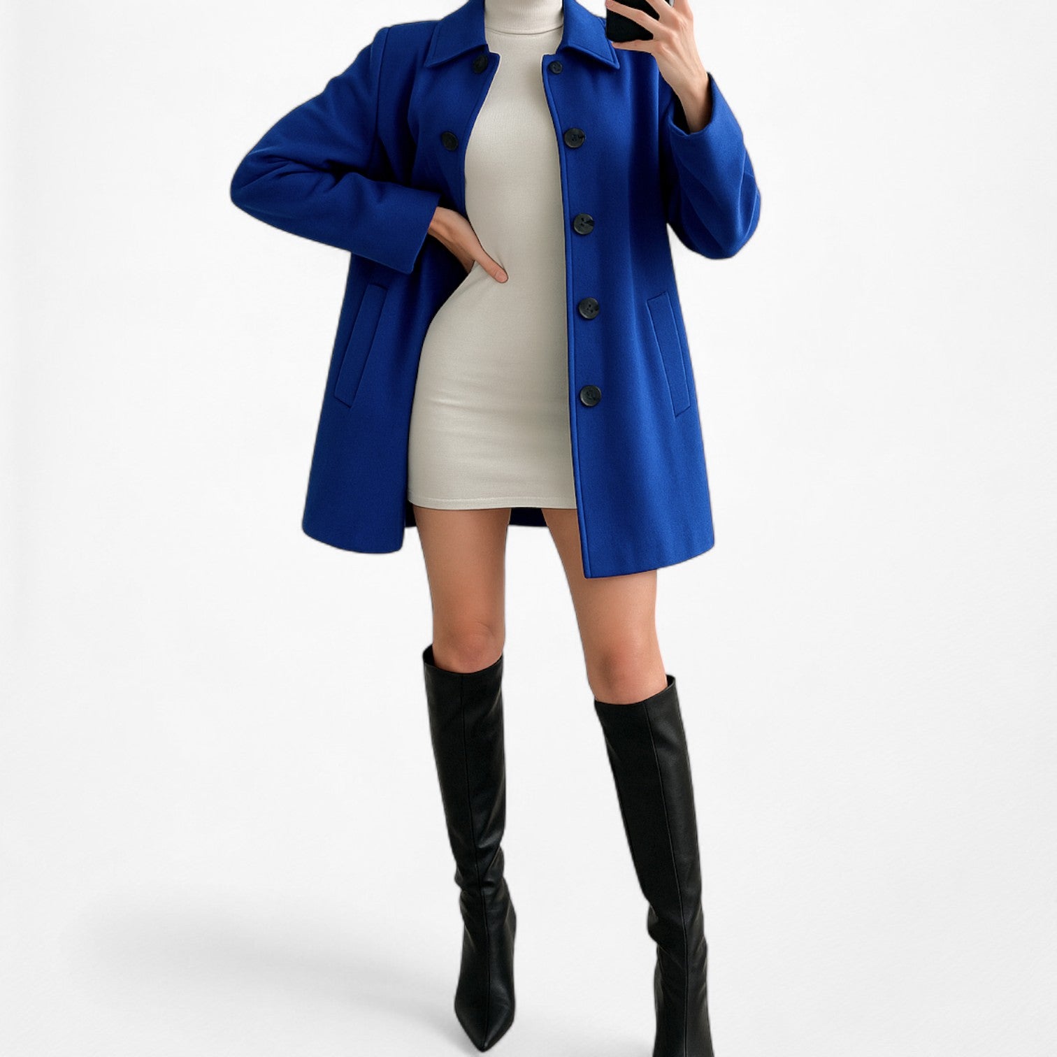 Blazer jacket. Button down front. Padded shoulders. Two front pockets