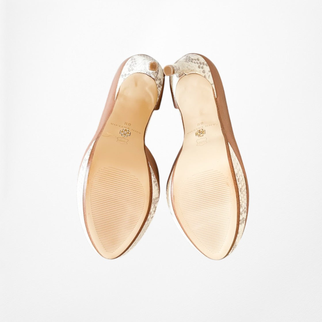 Vintage Y2K Brown Faux Leather Round Toe Snake Print Stiletto Pump Heels Size 6