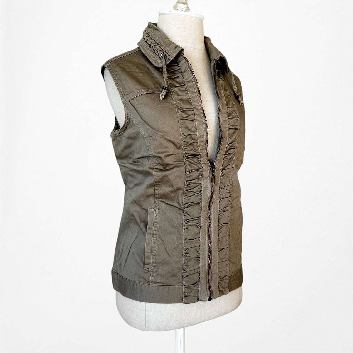 Vintage Y2K Brown Sleeveless Ruffle Zipper Front Collar Vest Tank Top Size M/L