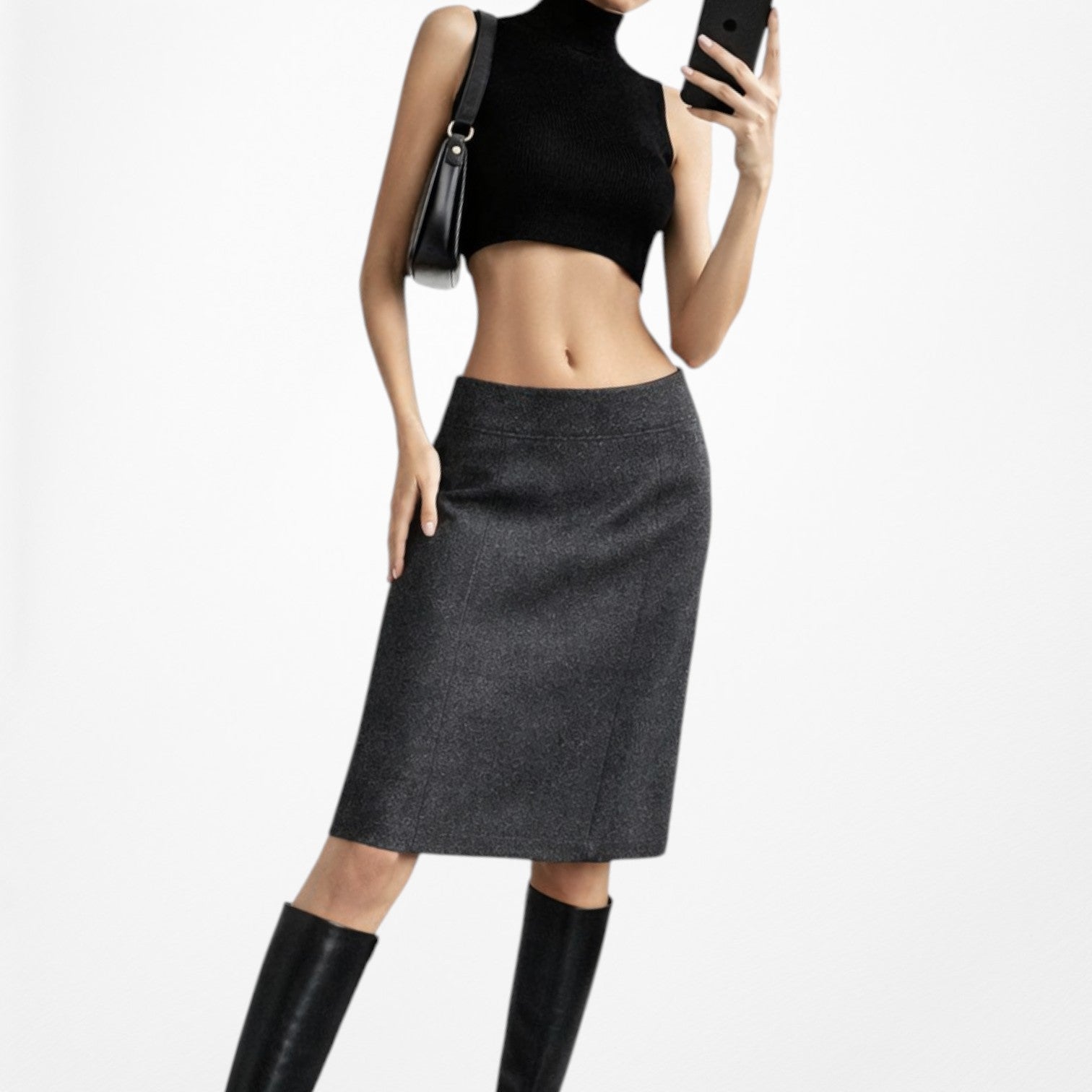 Vintage Y2K Gray Knee Length Bodycon Pencil Straight Skirt Size S/M