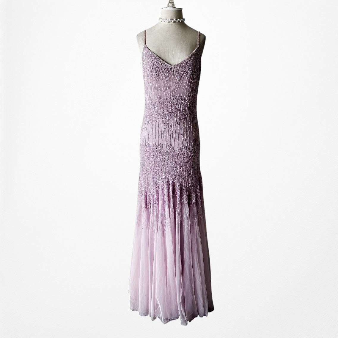 Vintage Y2K Pastel Purple V-Neck Beaded Bodycon Maxi Prom Dress Size M/L