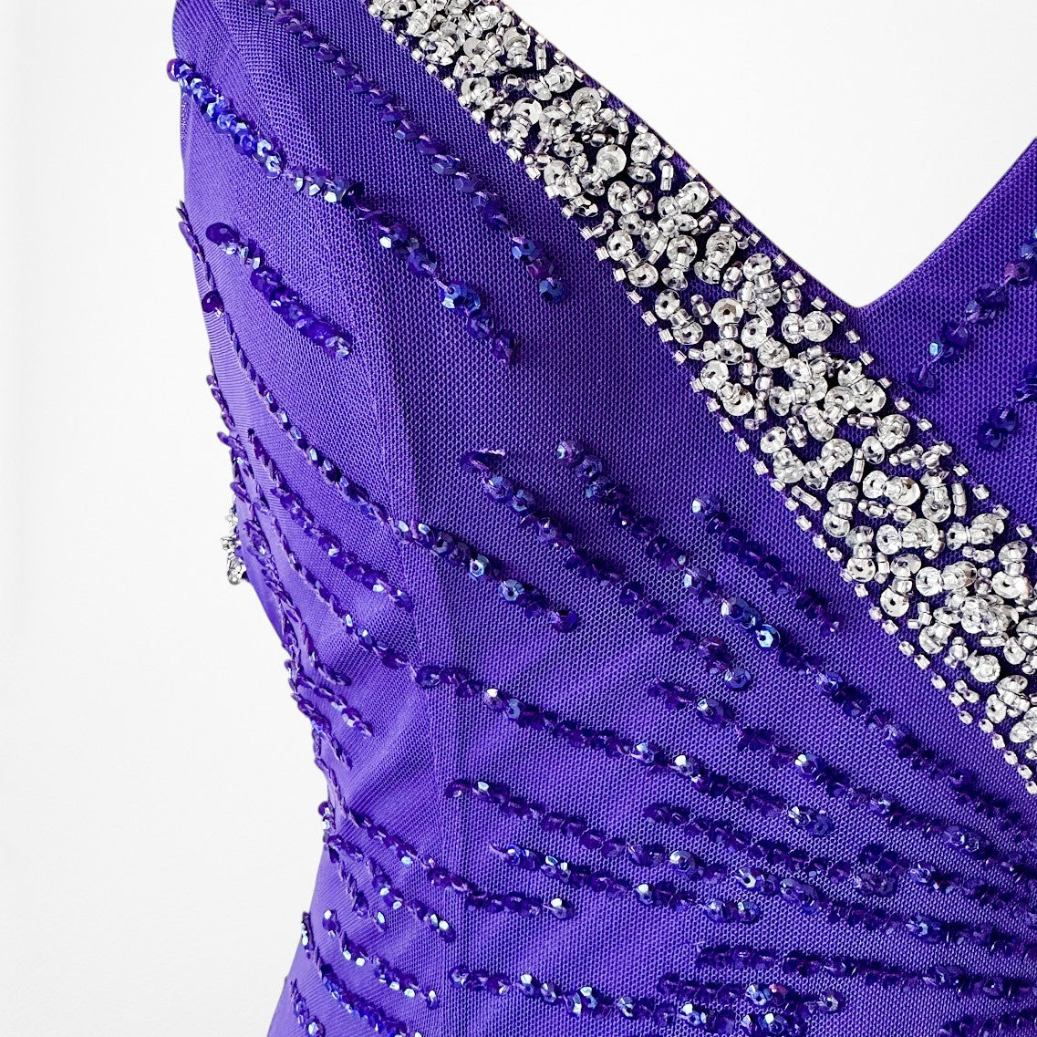 Vintage Y2K Purple Blue V-Neck Beaded Bodycon Maxi Prom Dress Size S