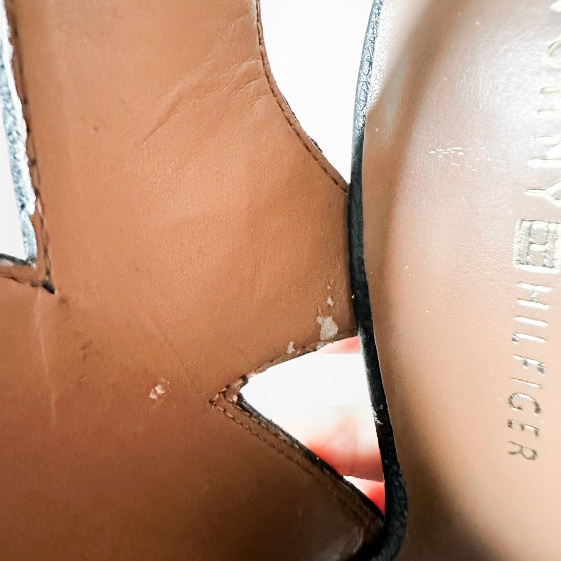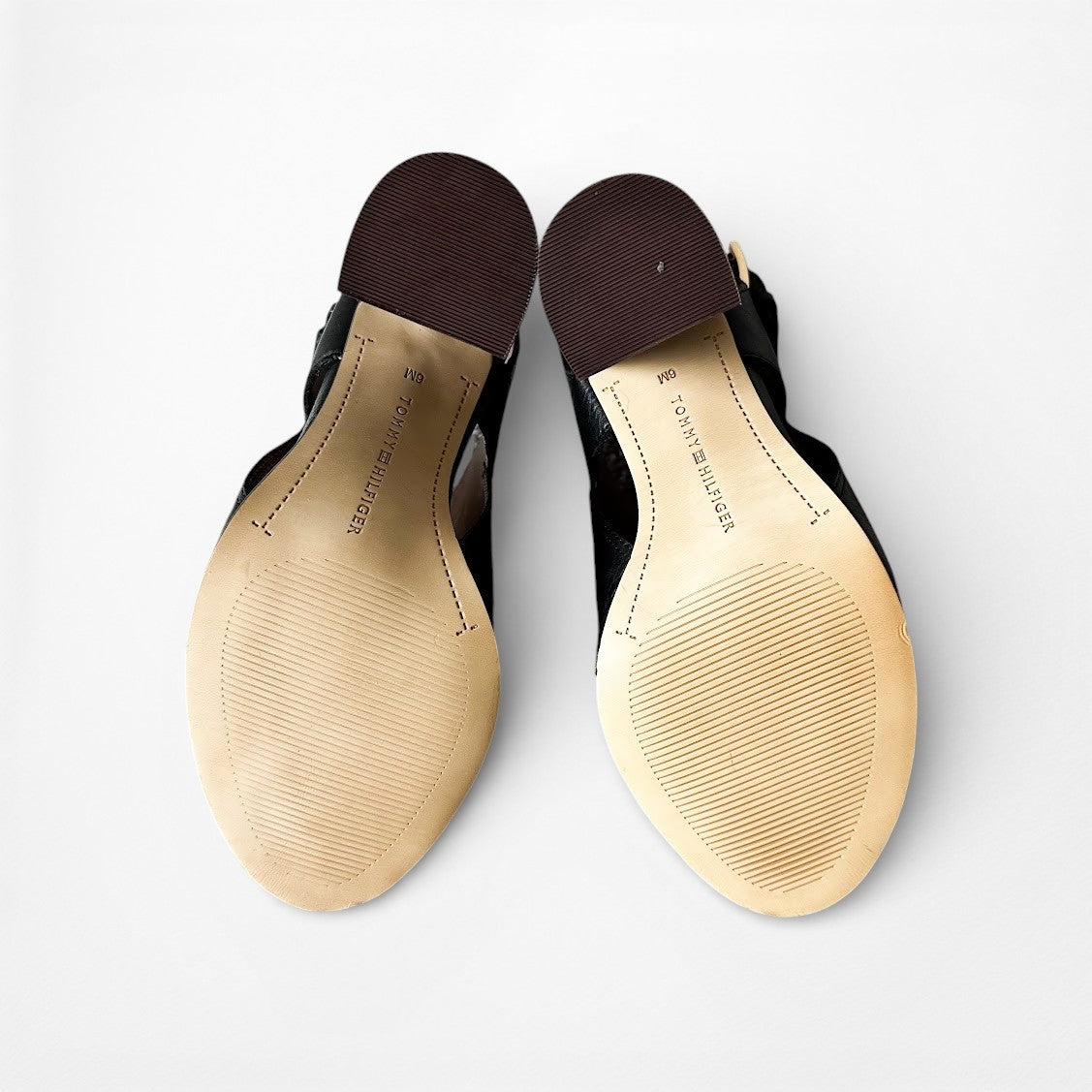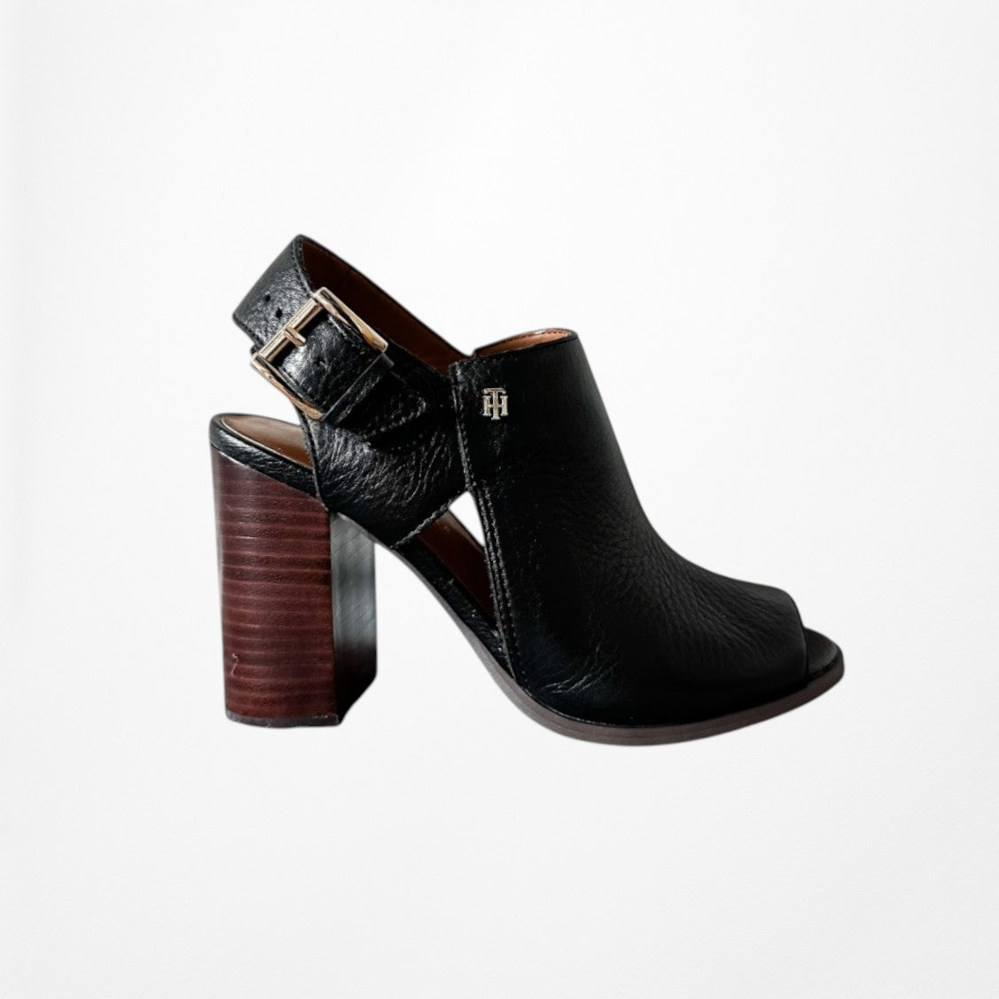 Vintage Y2K Tommy Hilfiger Black Peep Toe Chunky Heel Slingback Leather Shoes