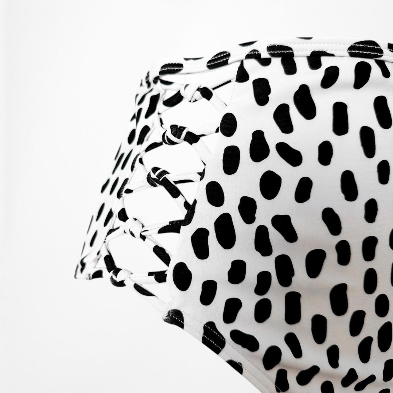 White Black Polka Dot High Waisted Cutout Strapless Two Piece Swimsuit Size XS/S