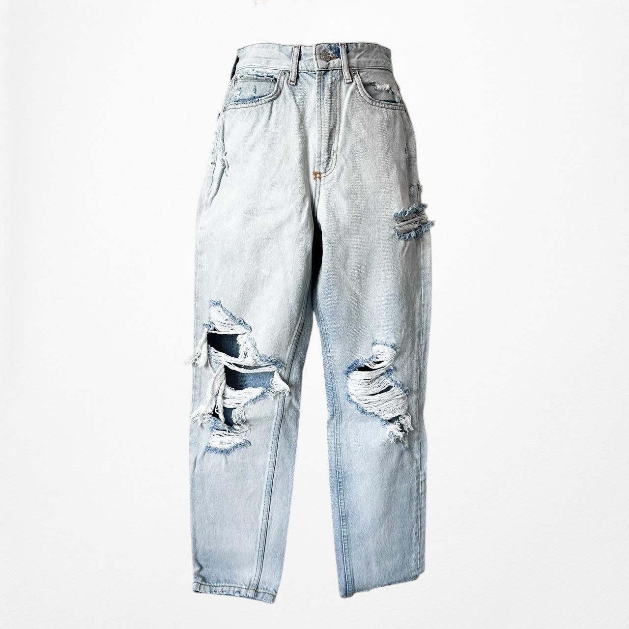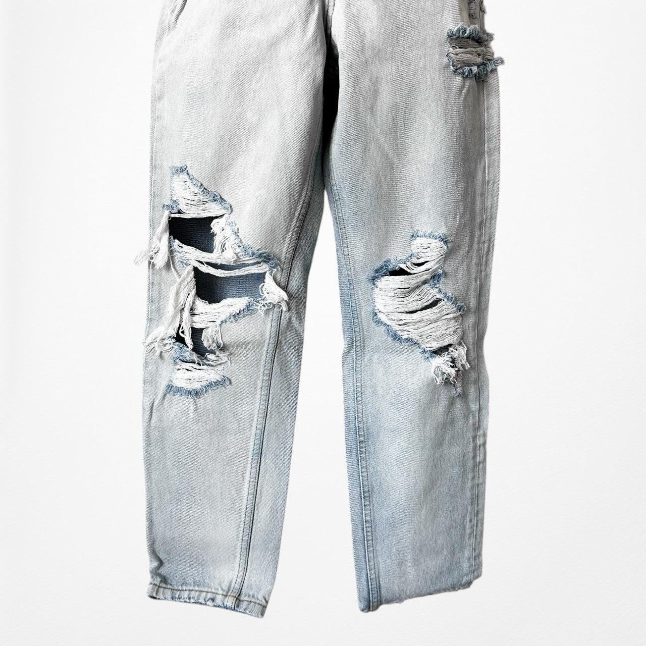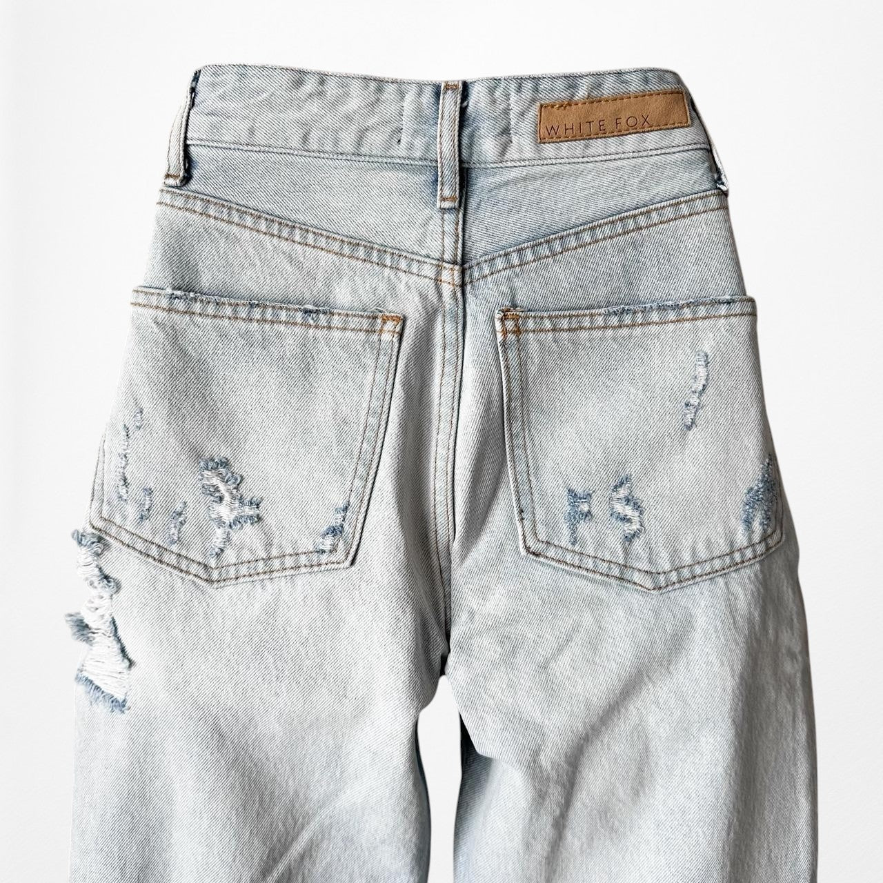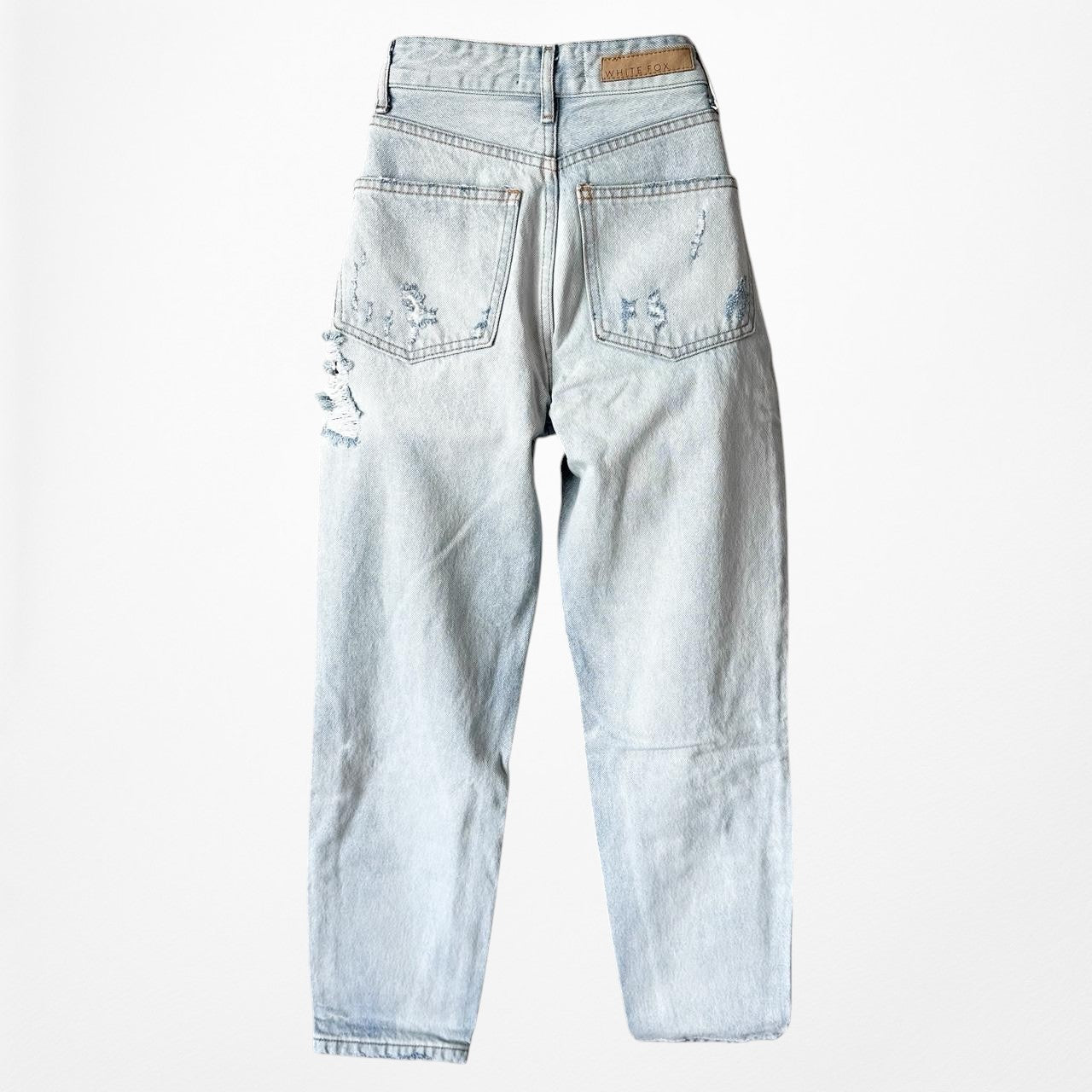 White Fox Boutique High Waisted Distressed Ripped Knee Cropped Mom Jeans Size XS