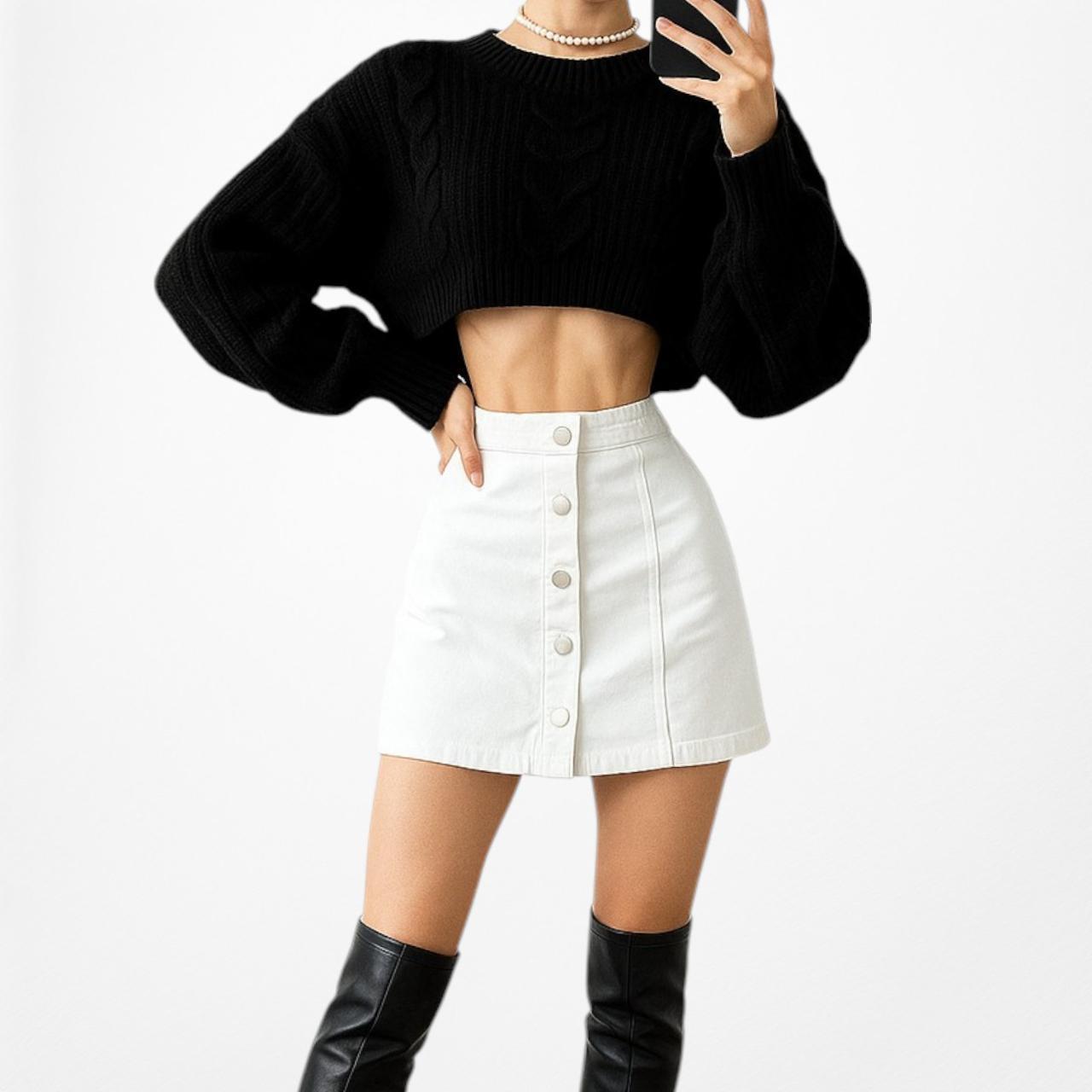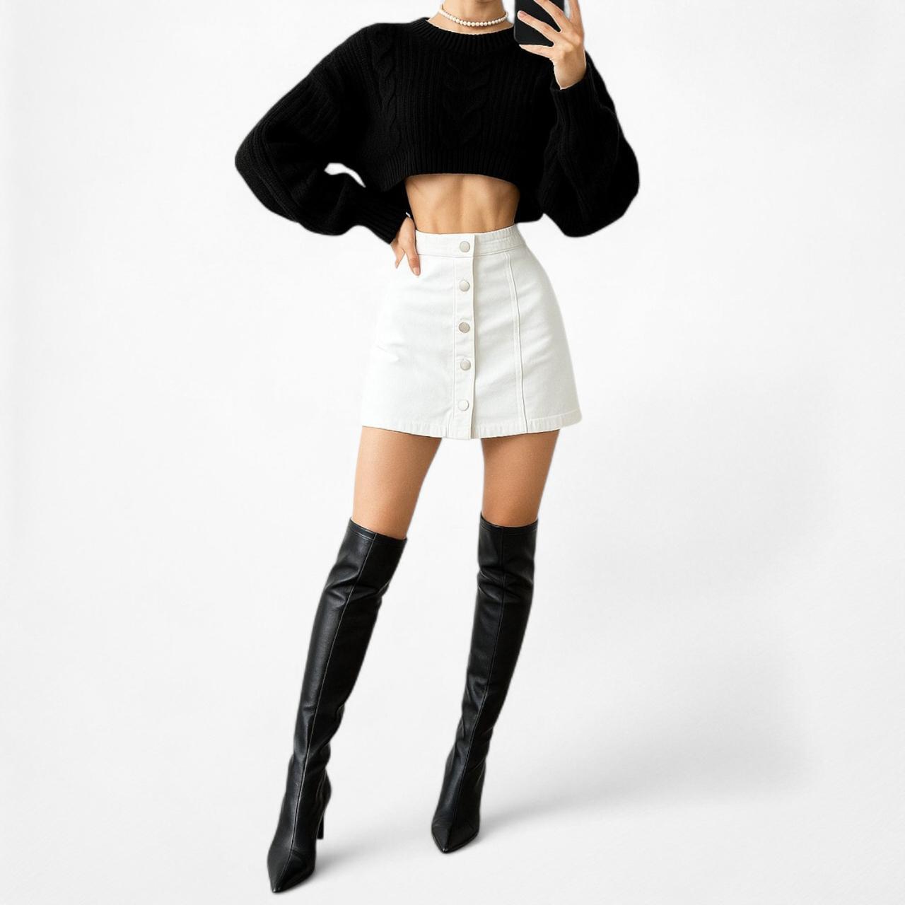 Vintage Y2K White Button Front High Waisted Denim A-Line Mini Skirt Size XS/S