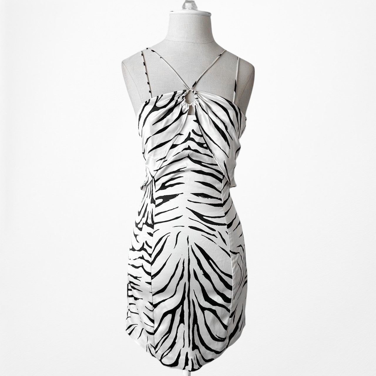 Zara Black White Animal Zebra Print Satin Mini Bodycon Dress Size S